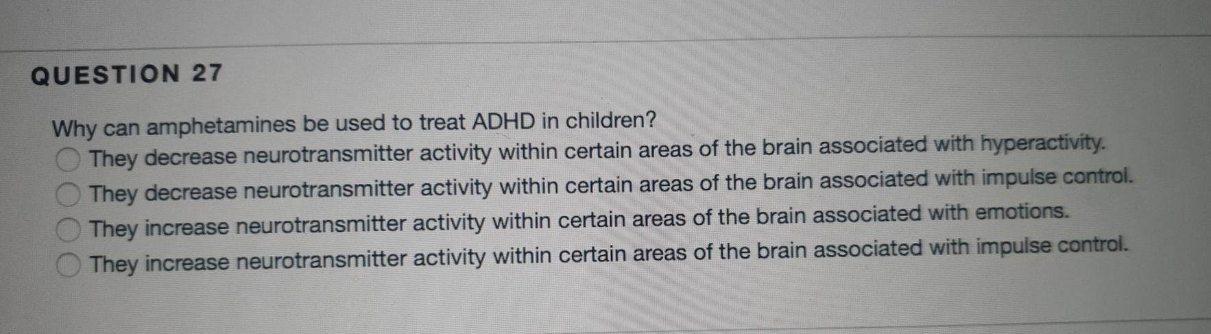 Solved Question 27 Why Can Amphetamines Be Used To Treat Chegg Com