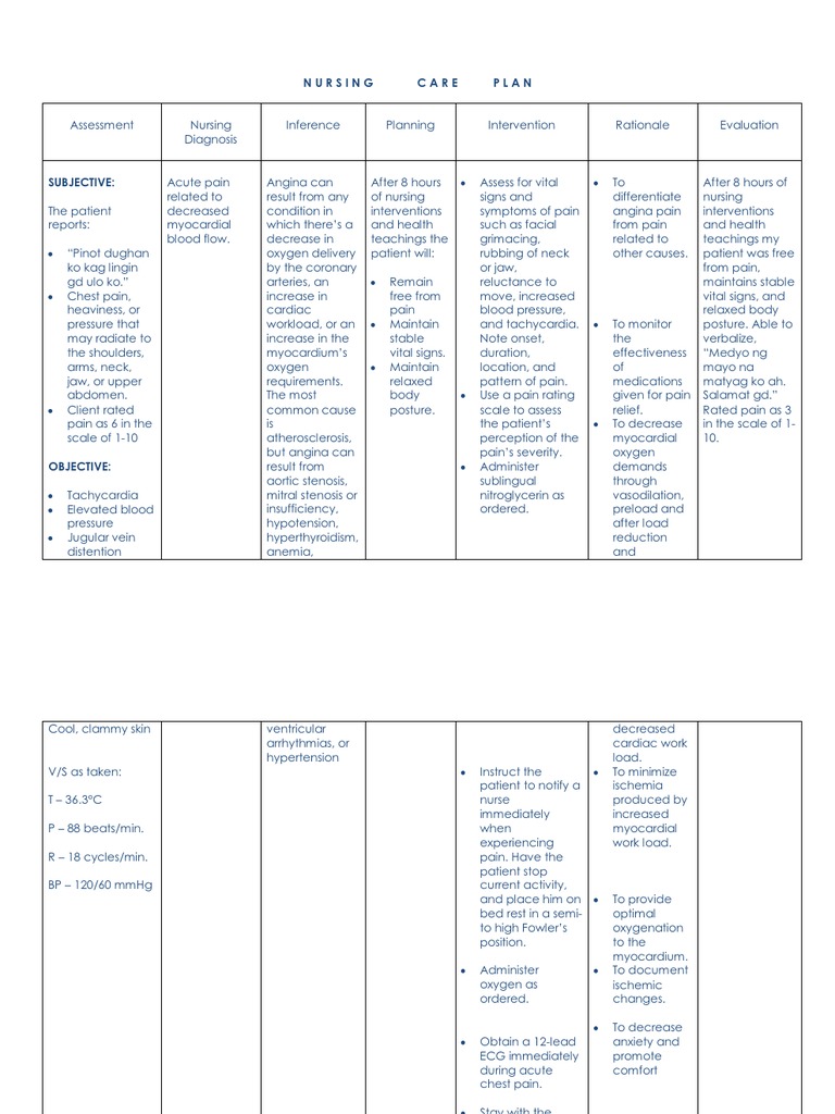 Nursing Care Plan For Angina Pectoris Ncp Free Download As Word Doc Doc Pdf File Pdf Text File Txt Or Vi Nursing Care Plan Nursing Care Care Plans